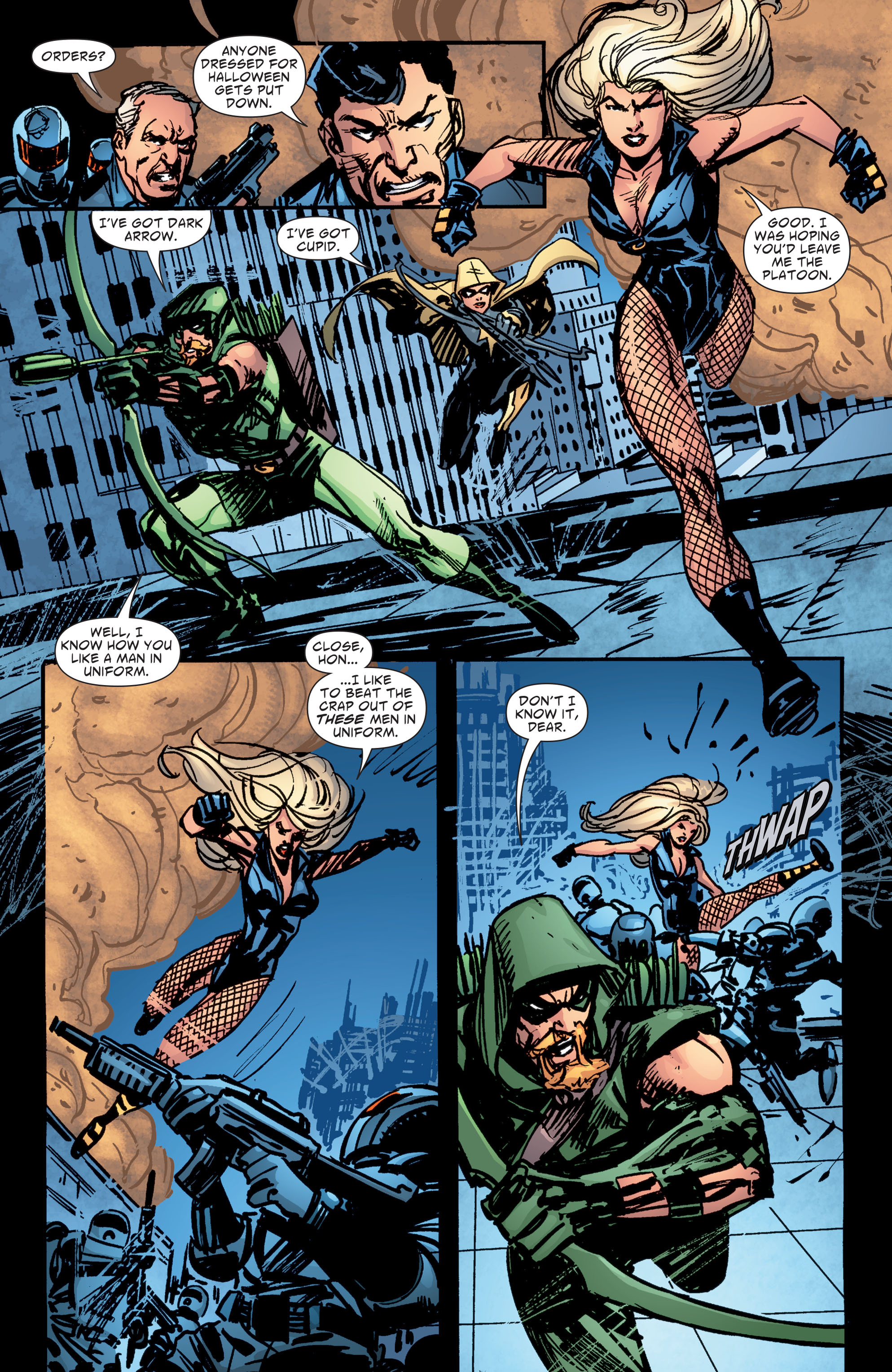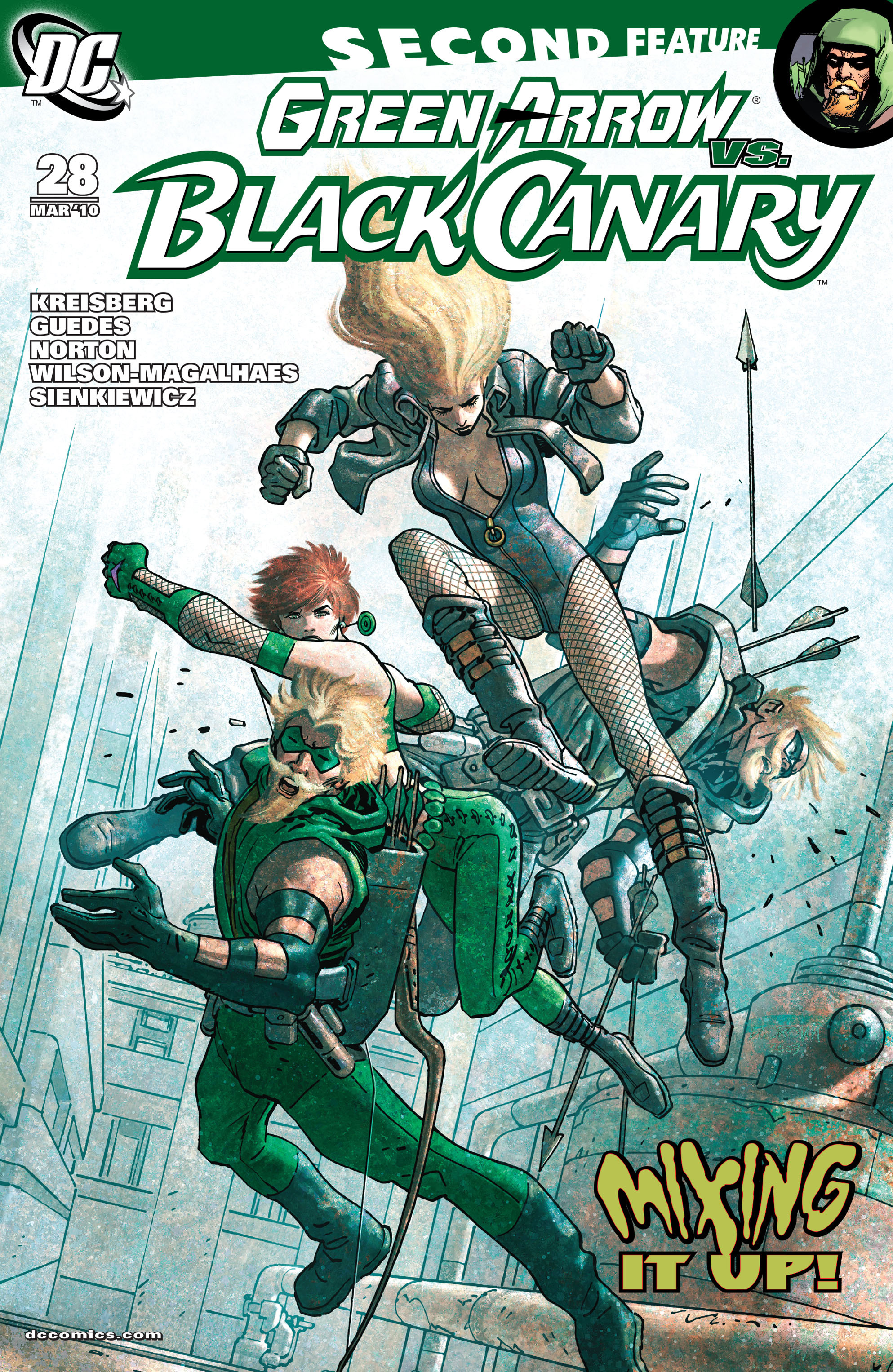 Green Arrow and Black Canary was a comic book ongoing series published by DC Comics starring superheroes Green Arrow and Black Canary. When Green Arrow jumped off a building Canary used her scream to propel him to the building that Faust was in. Arrow is a drunk jock stumbling into the living room at 3 am which about just as much logical sense.